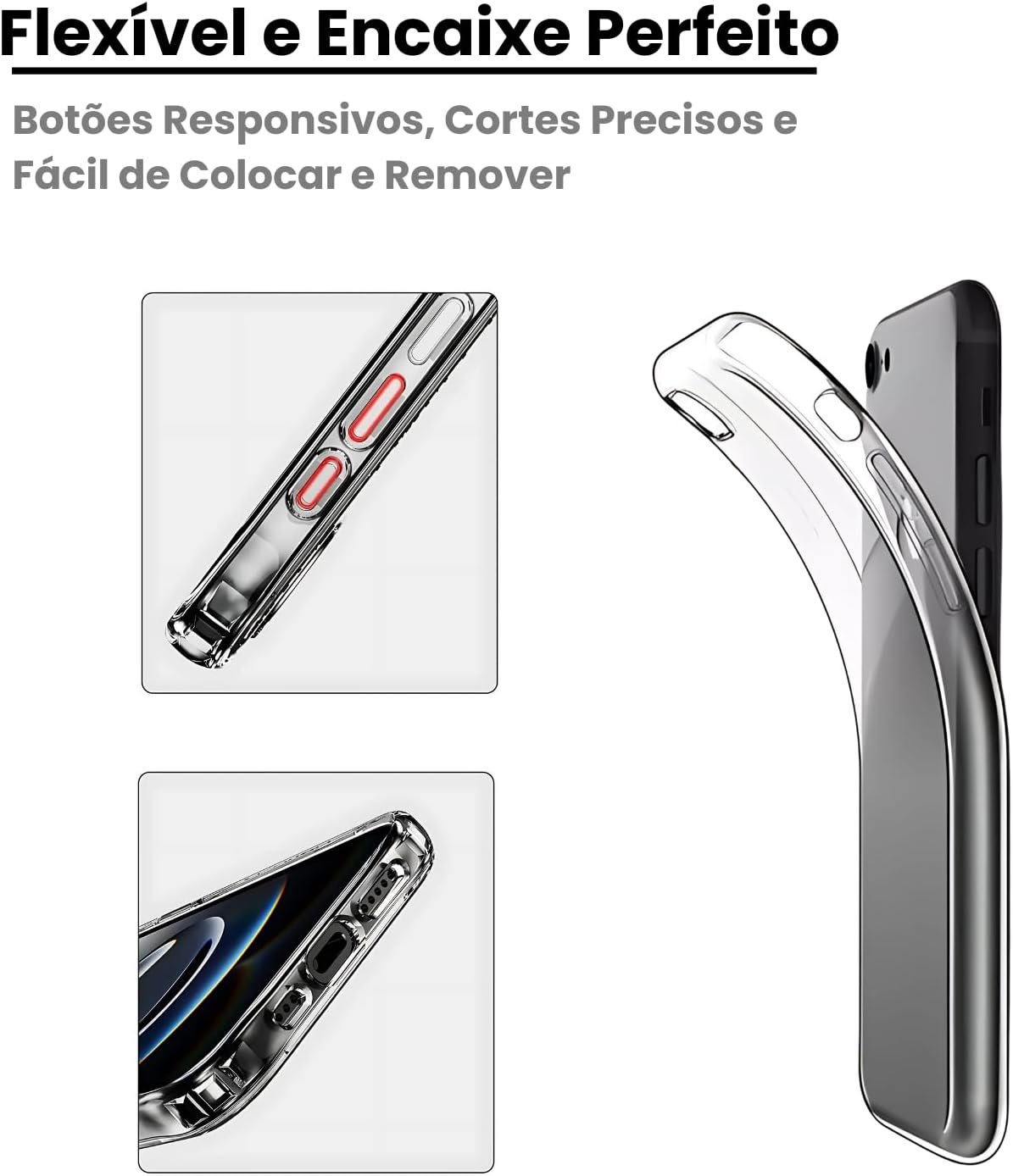 - Características Especiais: Absorvente de choque, Protetor de câmera embutido, Flexível, Leve, Compatível com carregamento sem fio