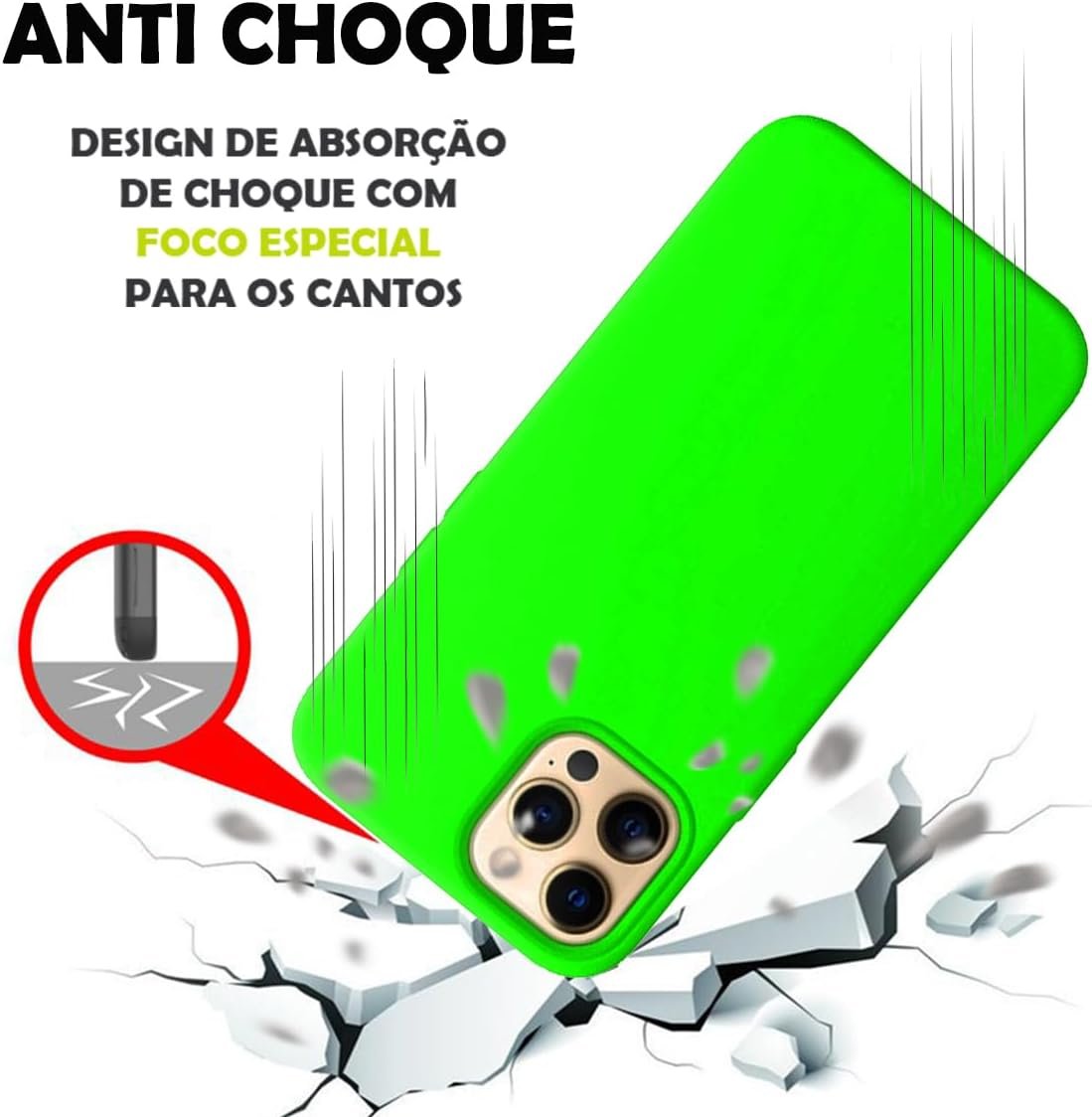 Capinha Slim Colorida Premium Compatível com iPhone 13 Pro – Verde Neon