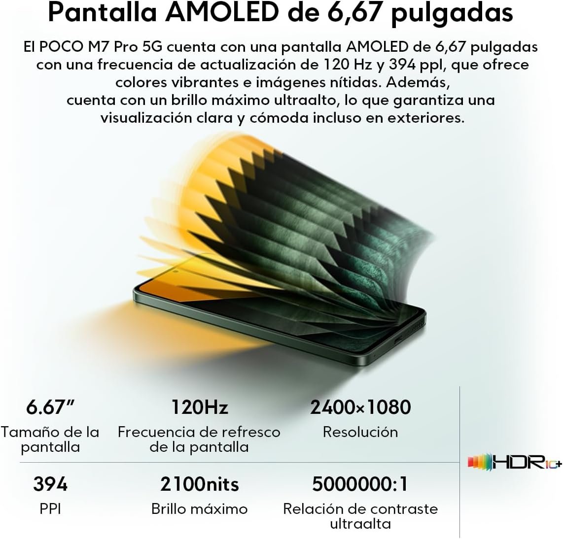 - Peças Para Montagem: POCO M7 Pro / Adaptador / Cabo USB tipo C / Ferramenta de expulsão SIM / Capa protetora / Informações de segurança / Guia de início rápido e cartão de garantia